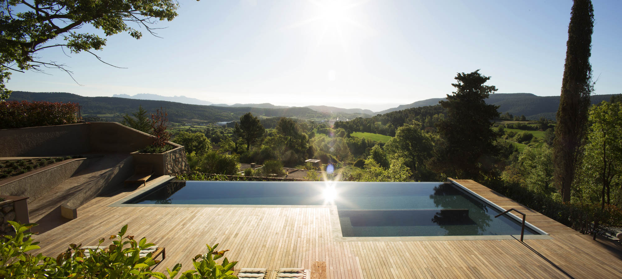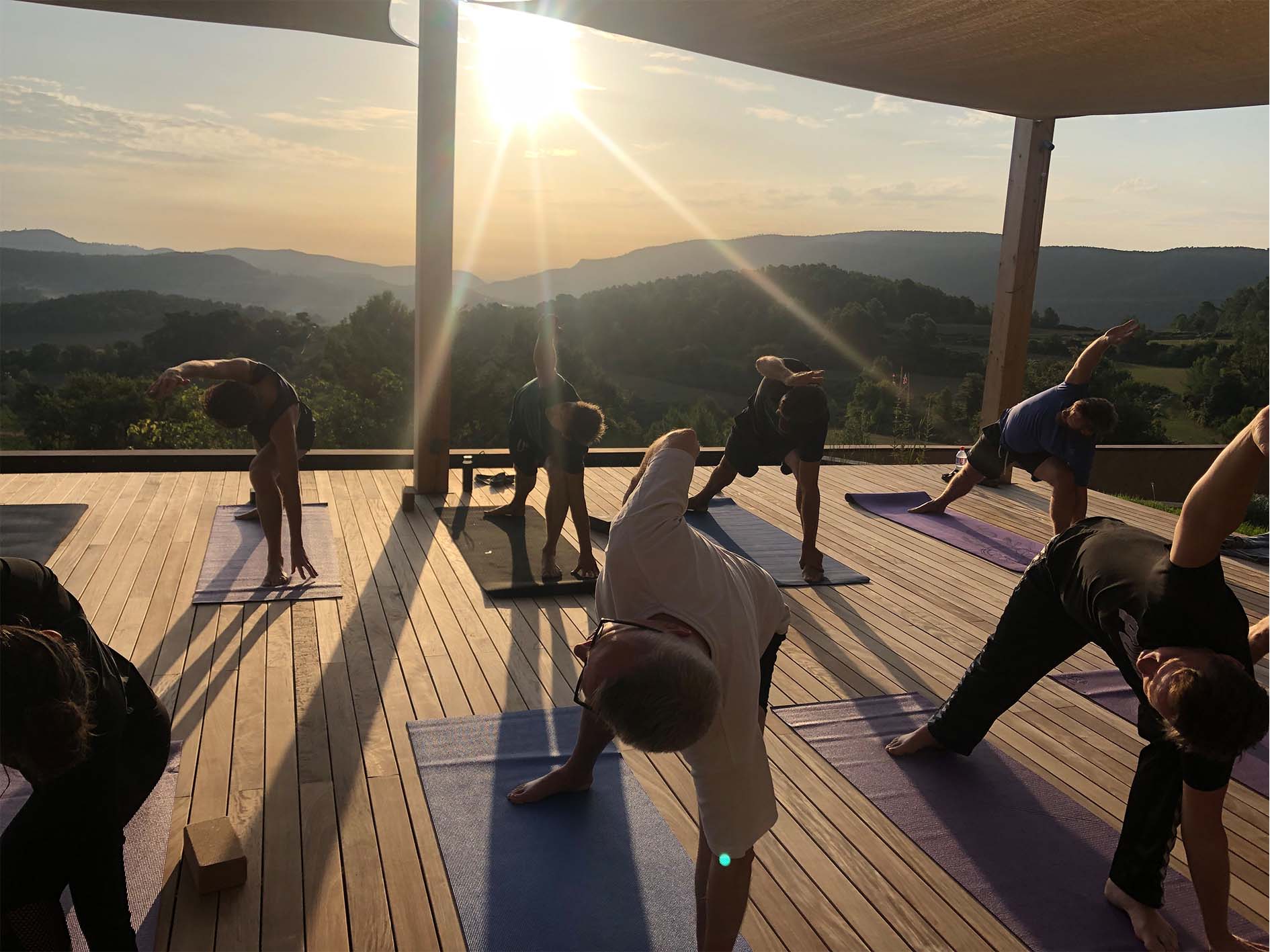 Yoga unter freiem Himmel, mit Blick über das weite Land Kataloniens. Der Infinity Pool, mediterrane Leichtigkeit und Rückzug inmitten der Natur.