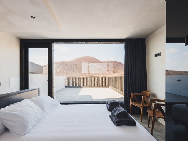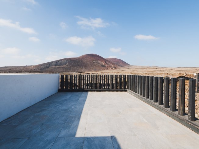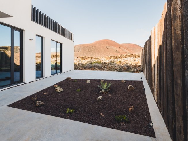 In Lajares erwartet dich ein minimalistisches Haus – hell, klar und eingebettet in die Weite der Natur.
