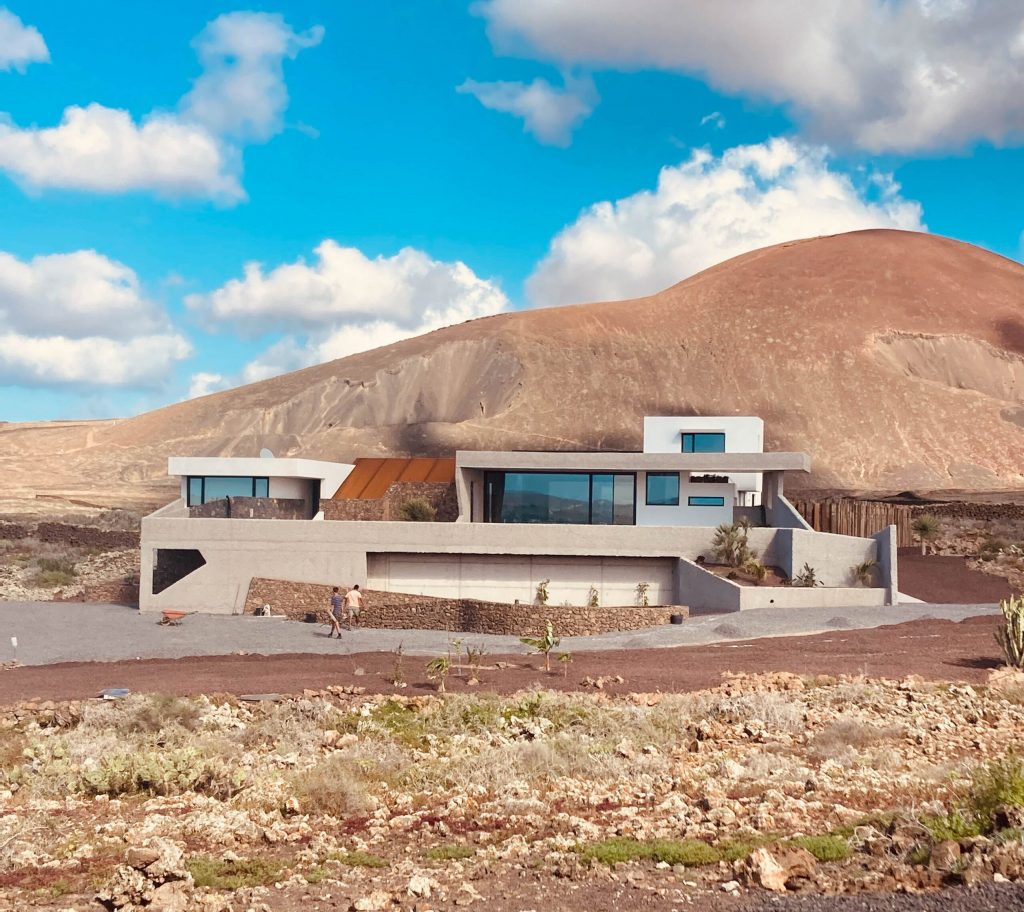 In Lajares erwartet dich ein minimalistisches Haus – hell, klar und eingebettet in die Weite der Natur.